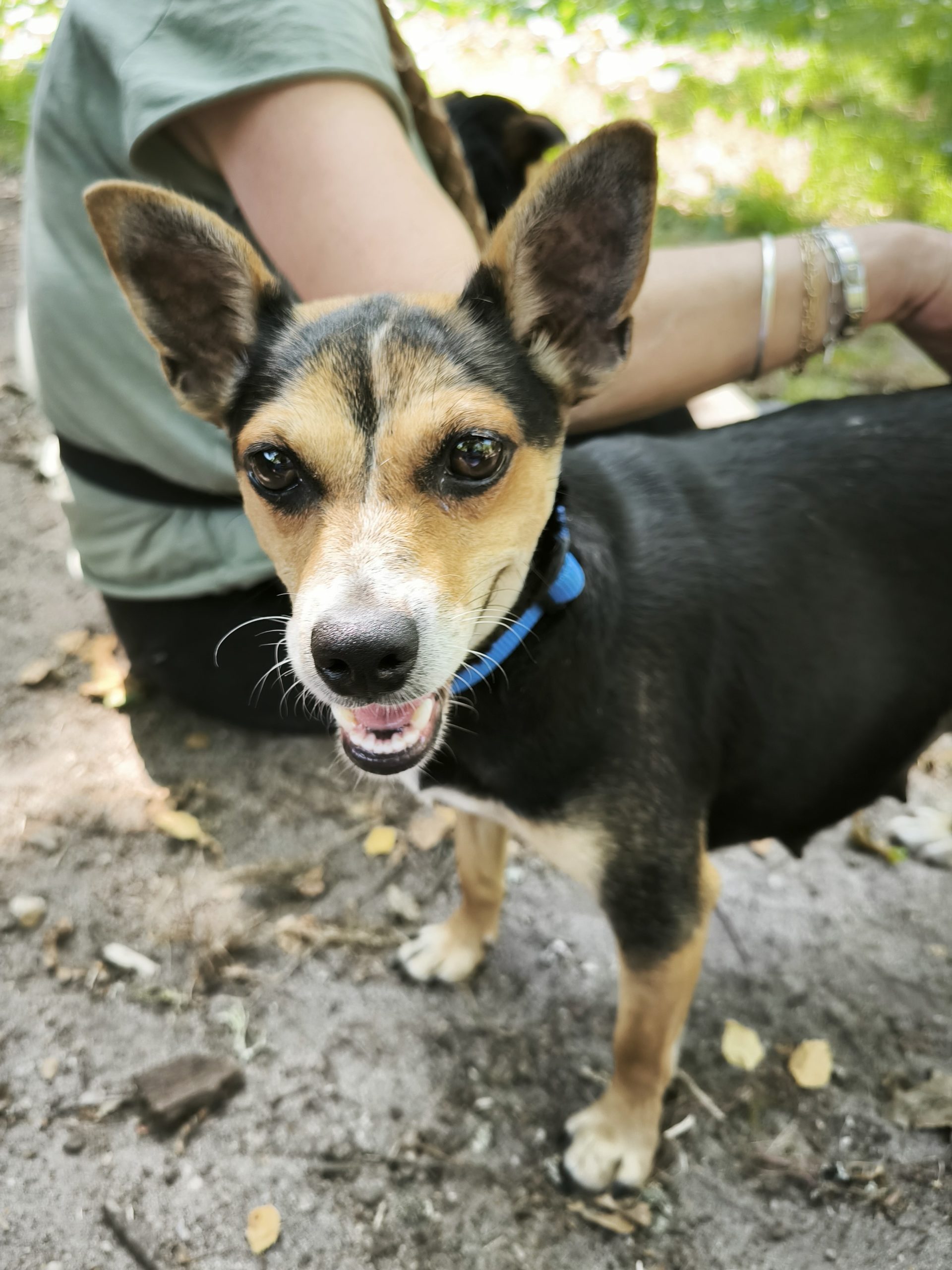 Je suis une chienne très douce et espiègle. J’adore me promener et jouer.